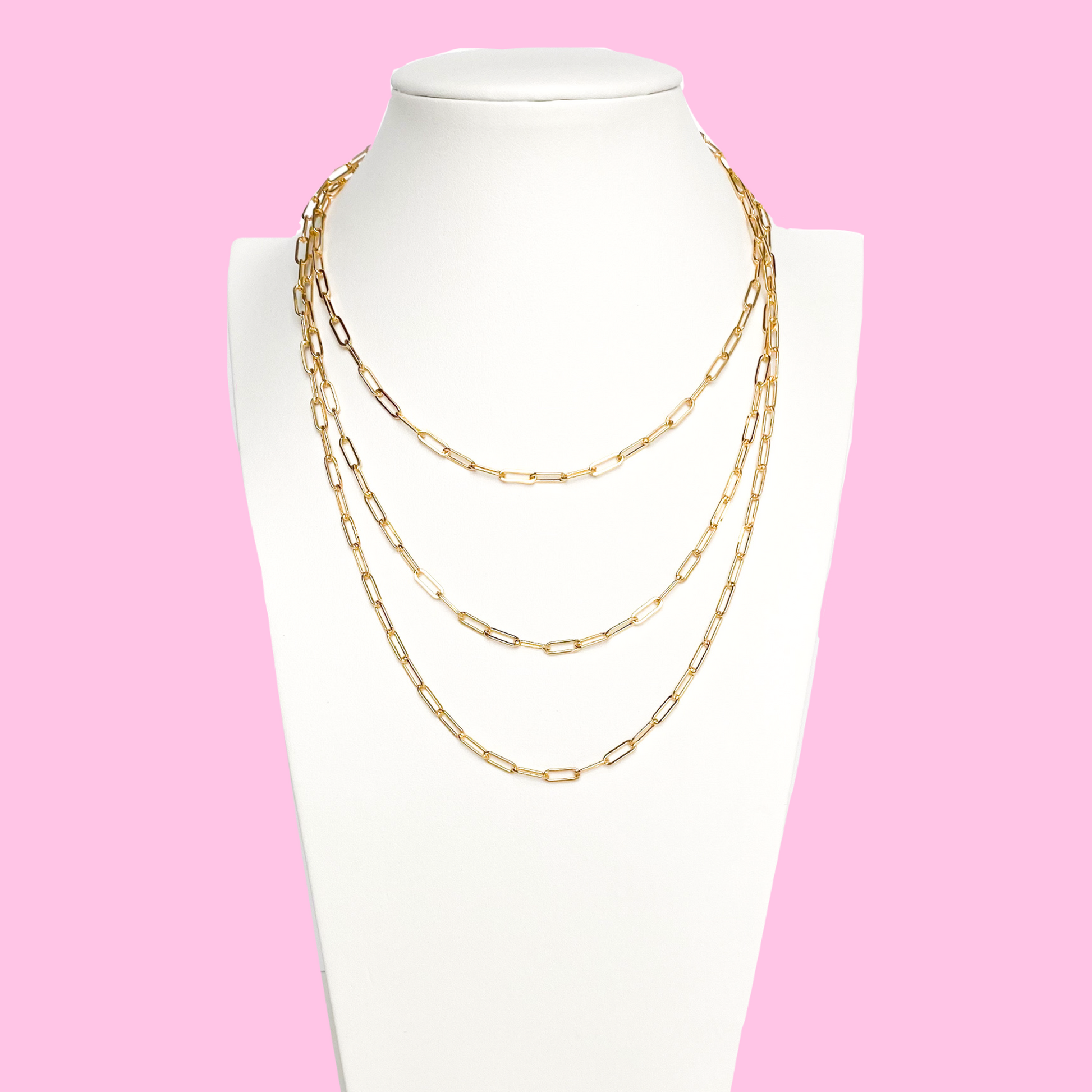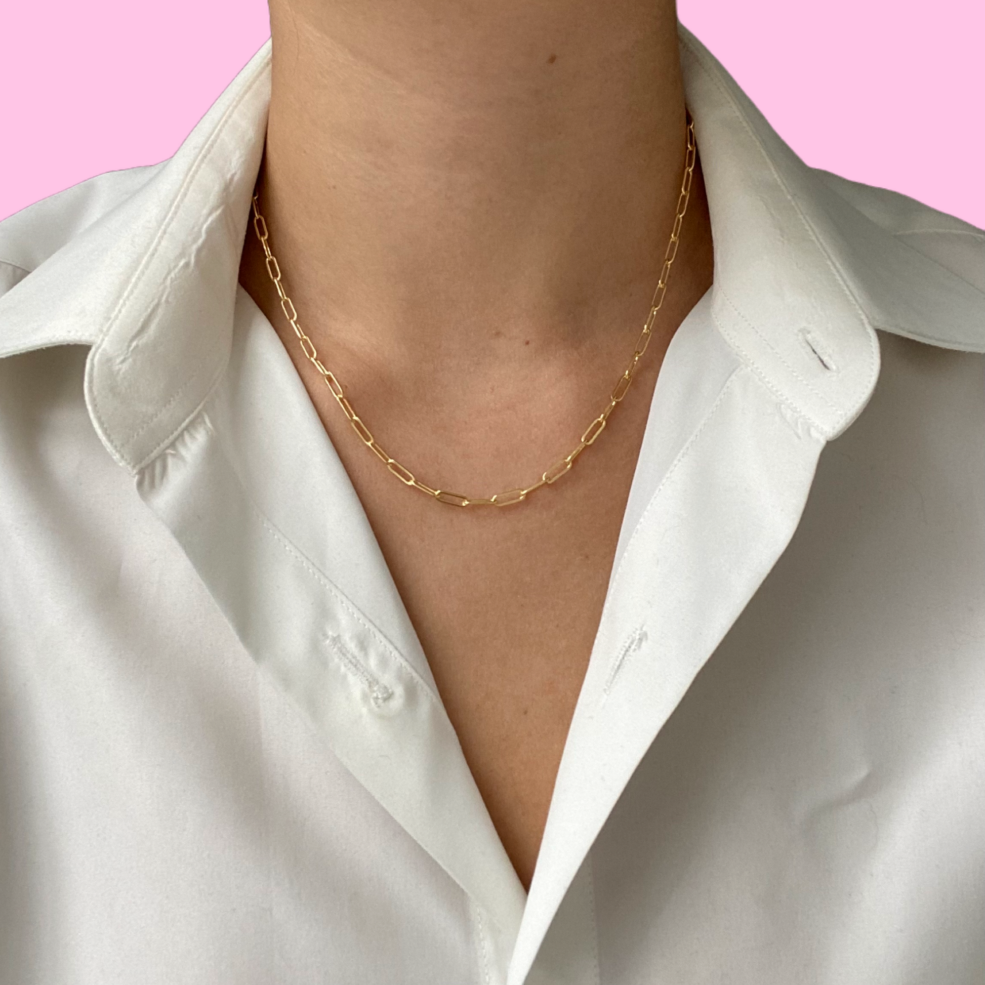 Meet: the Gold Chain Necklace! Crafted from 14K gold filled paperclip chain, this necklace is perfect for everyday wear. Choose from three length options - 14", 16", or 18" - for a customized fit. Wear it solo or style it with other necklaces for a trendy, layered effect!